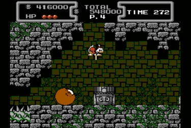 Un des aspects les plus satisfaisants de DuckTales est la collecte de diamants qui apparaissent un peu partout dans les niveaux. Elle nous encourage à beaucoup nous déplacer pour les faire apparaître. On se sent récompensé et c'est assez gratifiant. Mention particulière pour tous les trésors cachés dans les niveaux (et parfois dans les passages secrets eux-mêmes) et la présence de plusieurs personnages de la BD qui nous pousse à fouiller les niveaux. Pas d'inquiétude du côté du timer, il ne fait perdre qu'une vie quand il est écoulé. Vies qui sont d'ailleurs faciles à récupérer. La difficulté du jeu est ainsi bien dosée en offrant même un choix entre un mode facile, moyen et difficile. Trois fins sont possibles : sans argent, avec de l'argent ou avec une fortune colossale ! Débloquer la fin sans argent est d'ailleurs plus difficile que celle de la fortune maximale...